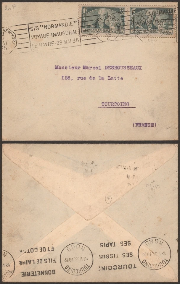 France 1935 - Cover Paquebot Normandie to Tourcoing G517