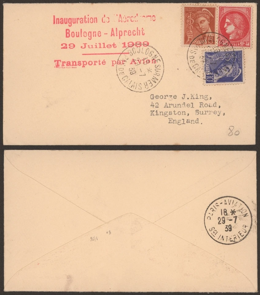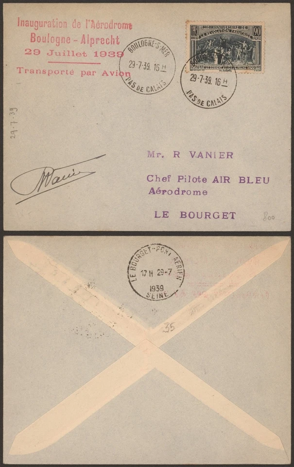 France 1939 - Commemorative Cover Boulogne Alprecht Airport G524