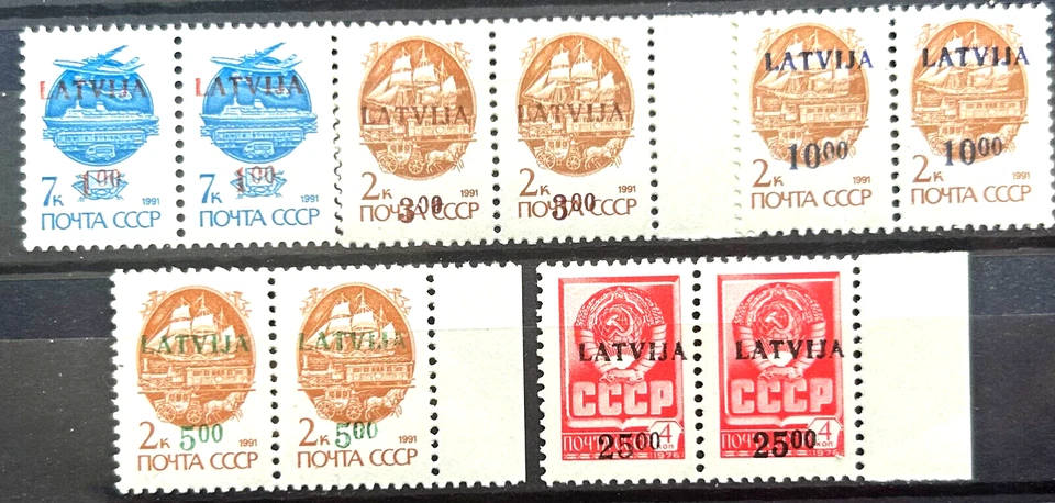 Latvia First Overprinted Post USSR Issues. Nice Pairs. MNH
