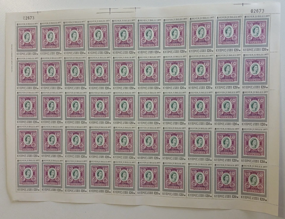 CYPRUS 1977 SILVER JUBILEE OF QEII MNH STAMP IN COMPLETE SHEET OF 50