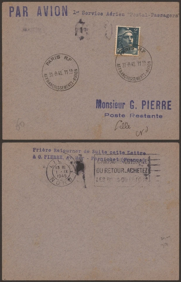France 1945 - Air Mail Cover Flight Lille Paris G520
