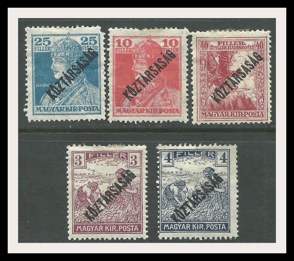 HUNGARY 1918 / OVERPRINT Köztársaság LOT OF 5 STAMPS MH