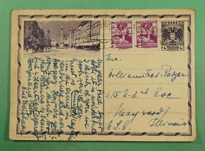 DR WHO 1937 AUSTRIA UPRATED PICTORIAL POSTAL CARD VIENNA TO USA R27054