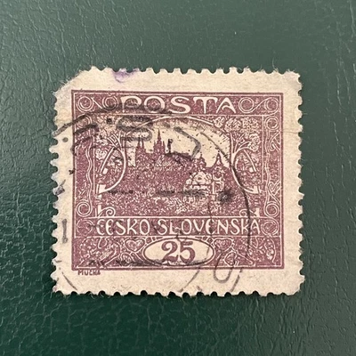 Czechoslovakia Stamp 1918-20 25h Hradcany Castle Perforated Alfons Mucha Design