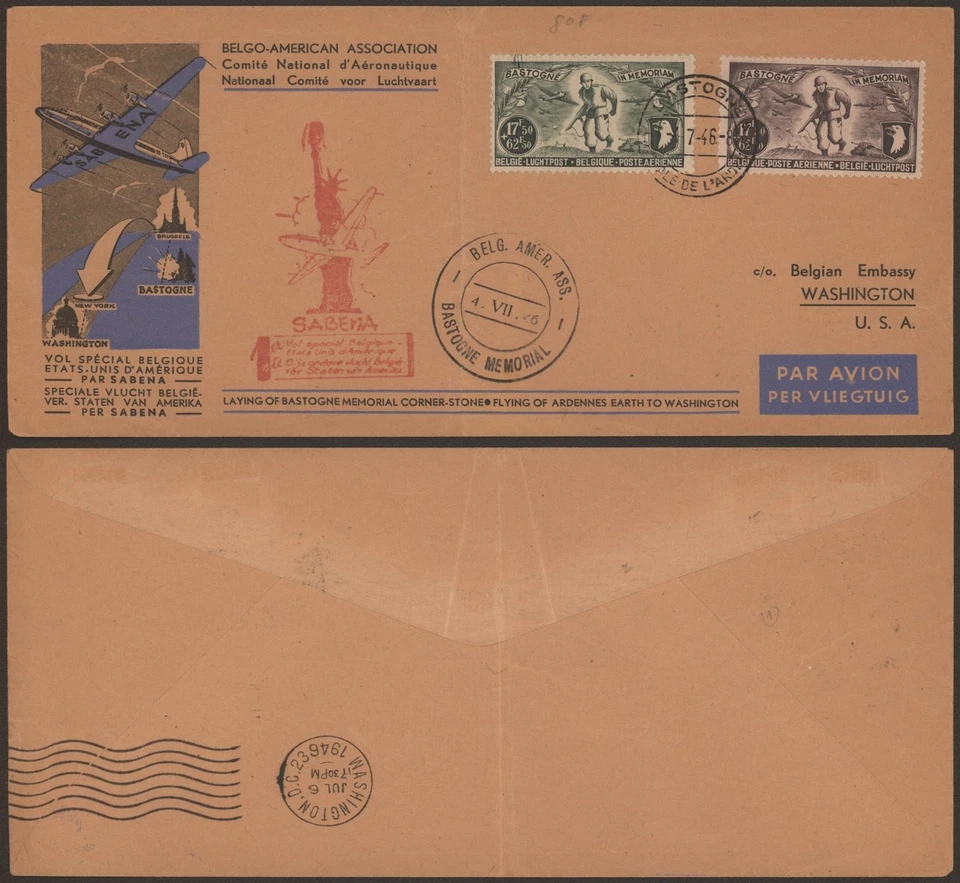 Belgium 1946 - Air Mail Cover Bastogne Memorial G532