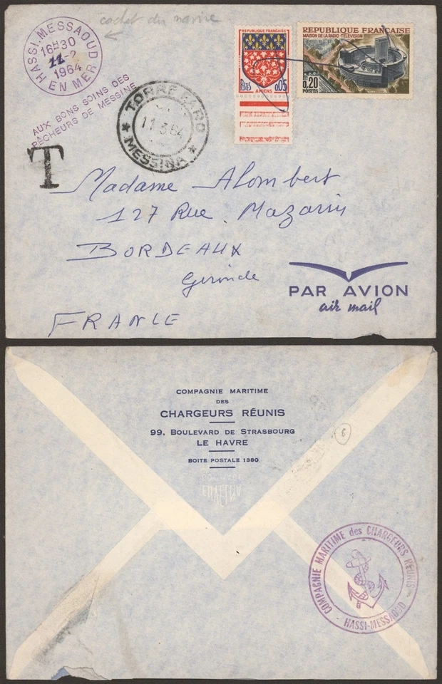 France 1964 - Cover Messina Italy to France - Maritime Cancel G516