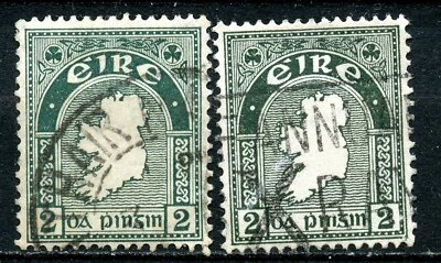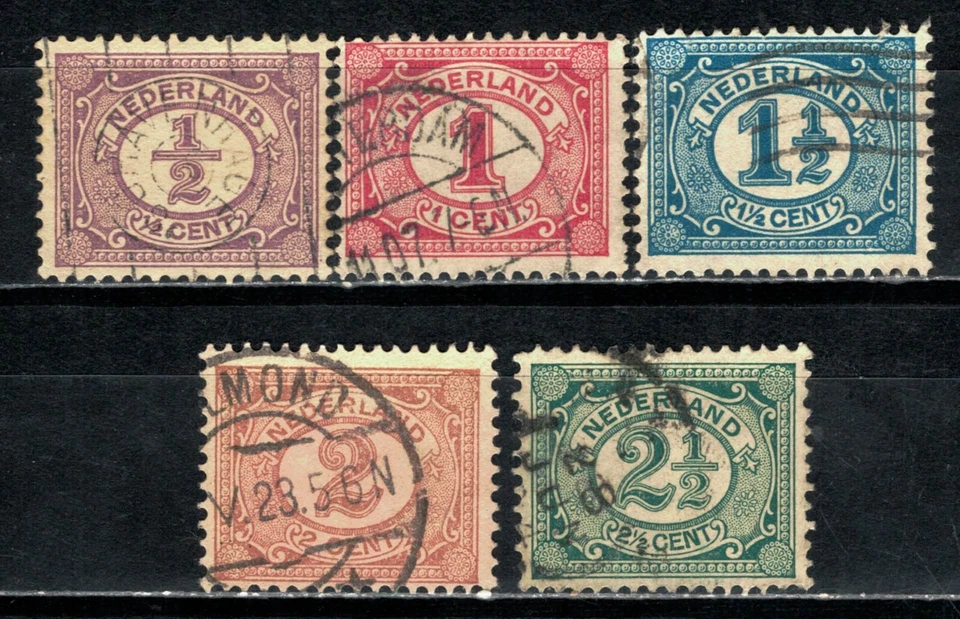two used "Numeral" postage stamps from the Netherlands.