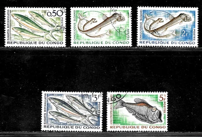 HICK GIRL-OLD USED FRENCH CONGO STAMPS FISH ISSUE A6815