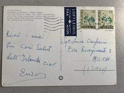 m) Air mail postcard Iceland 1965 to Italy flowers topical