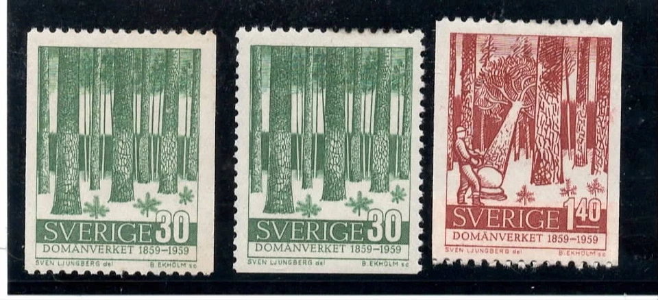 SWEDEN - SG. 412 / 413 + 412A : 1959 " CENTENARY of CROWN LANDS " .