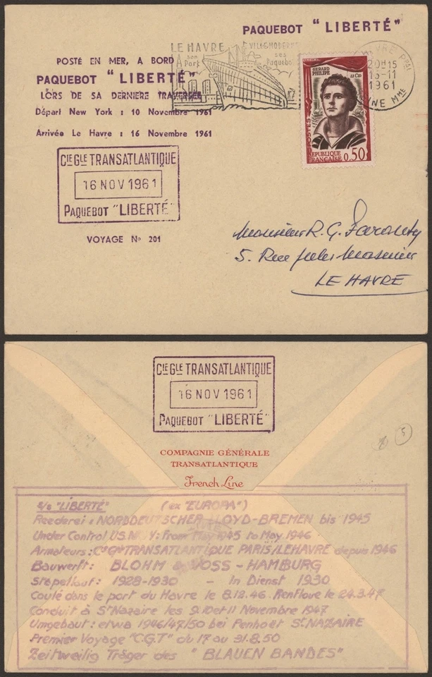 France 1961 - Cover Paquebot Liberté G515