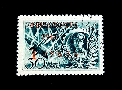 Russia USSR Stamp - 1944 WWII Military Soldier Overprint Air Mail 30kr CTO MNG
