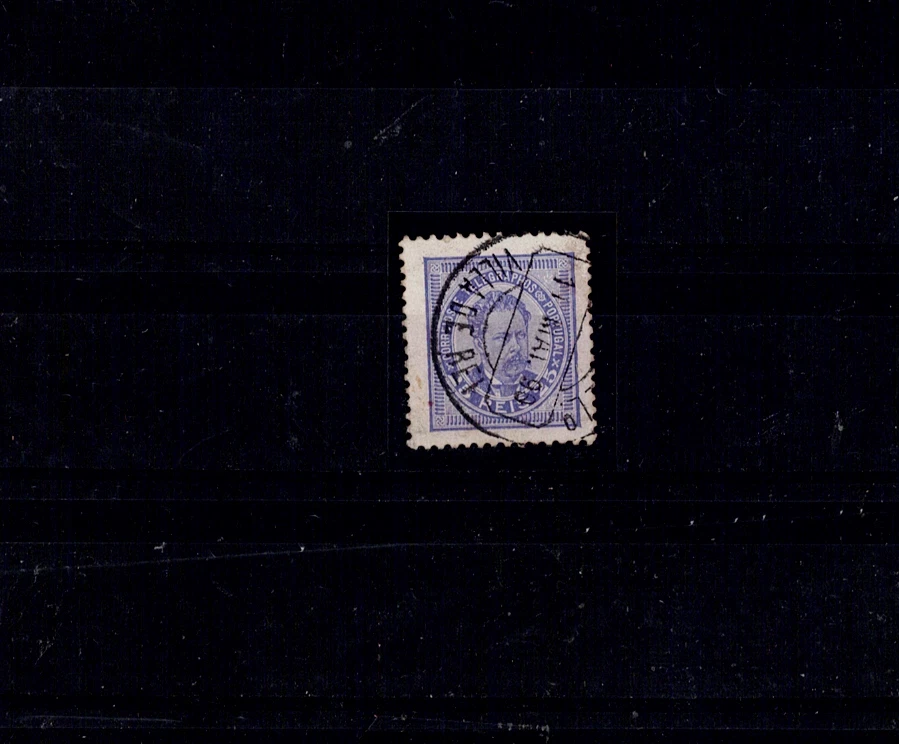 PORTUGAL-1884-87 25 rs viol. azul, D.LUÍS I. De frente. Nov. val. VILLA DE REI