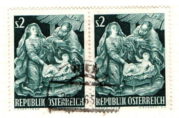 Austria 1963 2 s Christmas joined pair SG1409 Used