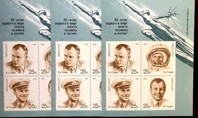 RUSSIA USSR SC#5977a Space Gagarin Anniversary. Souvenir Sheet x 3. SCV$16 MNH