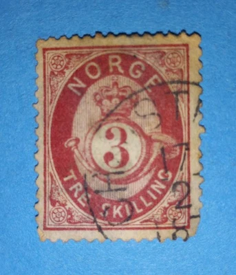 + 1872 Norway Skandinavian 3 Skilling Post Horn #18 used