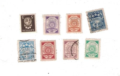 8 ANTIQUE LATVIJA LATVIA STAMP HINGED