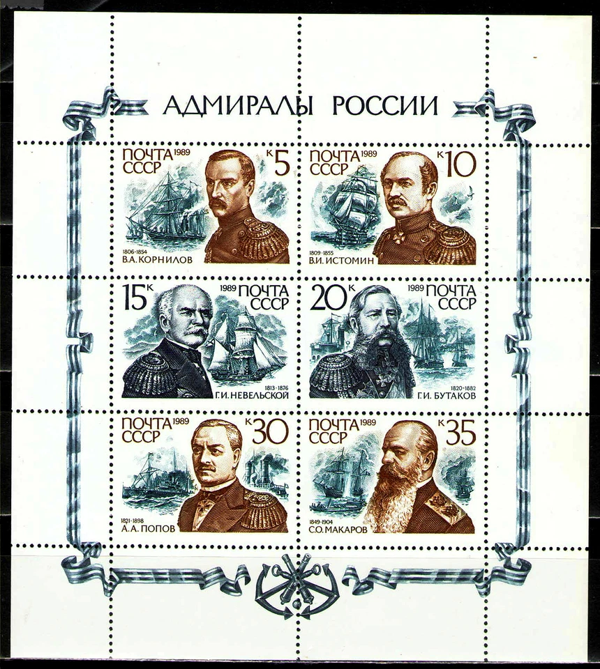 Russia USSR 1989 SC#5850 Admirals & Ships in Battles. S/S. MNH