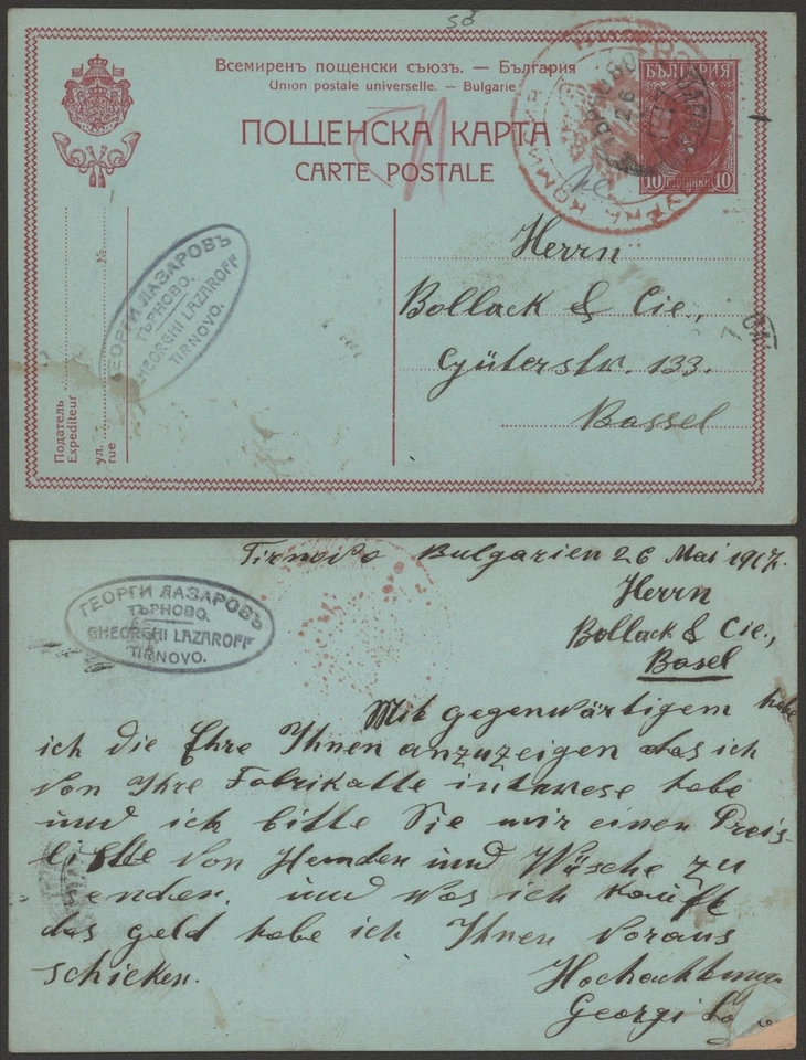 Bulgaria WWI 1917 - Postal Stationery to Switzerland - Censor E968