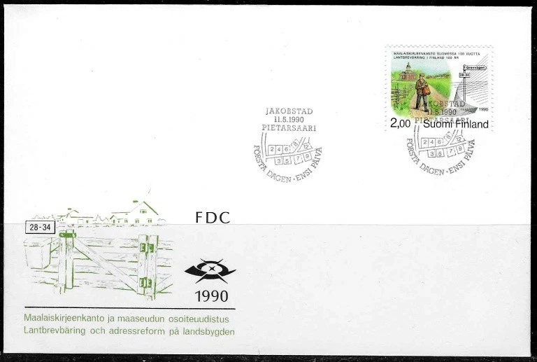 Finland 1990 Postman, Rural Postal Services, First Day Cover