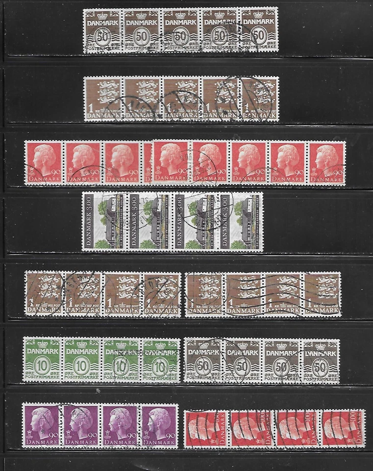 Denmark - Nice Selection of Eleven Strips of Four & Five - as shown - kha167