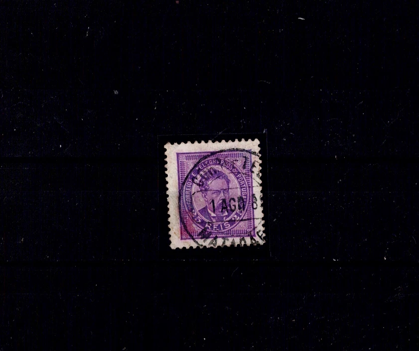 PORTUGAL-1884-87 25 rs viol. azul, D.LUÍS I. De frente. Nov. val. MATACÃES