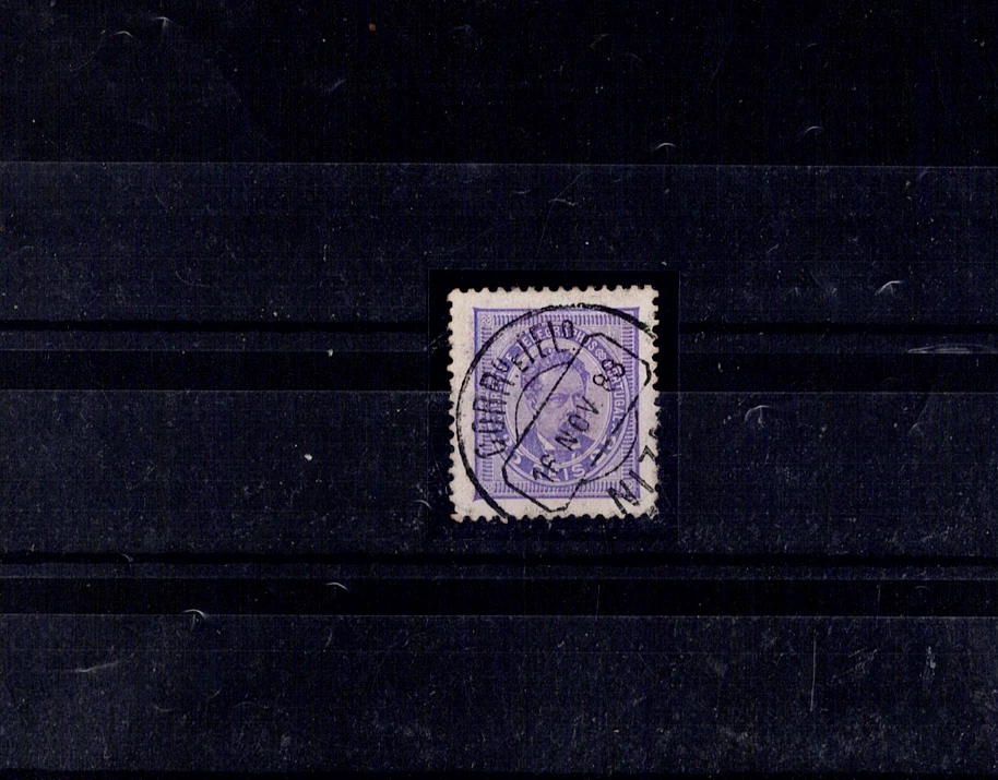 PORTUGAL-1884-87 25 rs viol.azul,D.LUÍS I.De frente.Nov. val.FORNOS DE ALGORDES