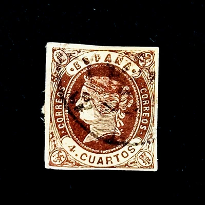 SPAIN Stamp - 1862 Queen Isabella Cut Square 4. Cuartos