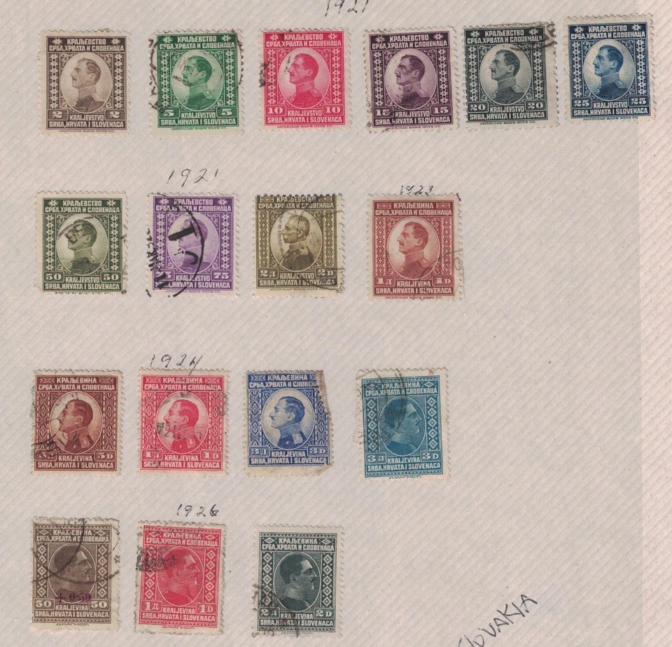 1921-1926 SLOVENIA SERBIA CROATIA STAMP LOT USED UNUSED HINGED ON ALBUM PAGE