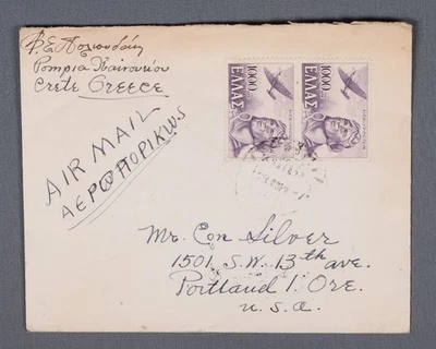 MayfairStamps Greece Pair Airplane Pilot to Portland OR Cover aau_73197