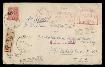 DR WHO 1948 ROMANIA REGISTERED METERED BUCHAREST AIRMAIL TO USA M56575