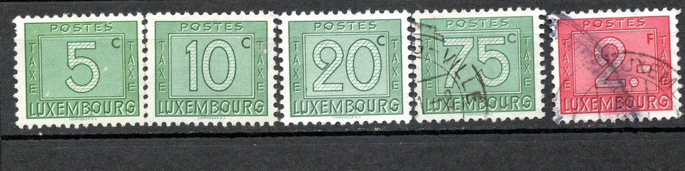 Luxembourg #J23-J25, J29-J30 numeral, 5 stamps