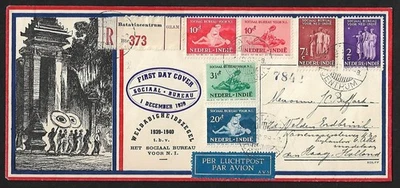 NETHERLANDS INDIES BATAVIA TO NETHERLANDS FDC AIR MAIL SOCIAL BUREAU COVER 1939