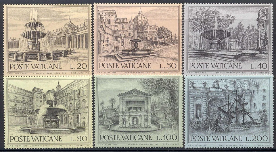 Vatican City - 1975 set of 6 - Fountains of Rome #573-8 cv 1.55 lot #24