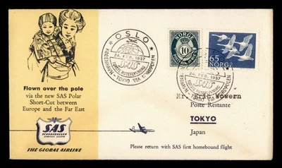 DR WHO 1957 NORWAY FIRST FLIGHT SAS OSLO TO TOKYO JAPAN M56383