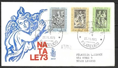 1973 Italy first day cover full set 3 stamps for Christmas postmarked 27.11.73