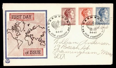 DR WHO 1961 LUXEMBOURG FDC GRAND DUCHESS CHARLOTTE TRI COLOR CACHET COMB M56491