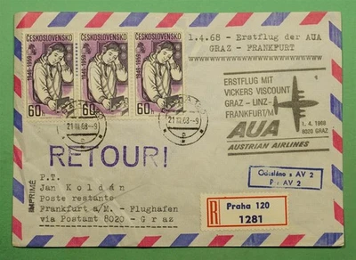 DR WHO 1958 CZECHOSLOVAKIA AUA AIRLINES FIRST FLIGHT TO FRANKFURT w14371