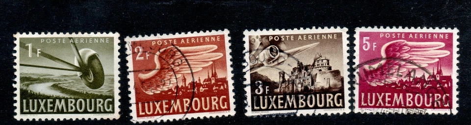 Luxembourg #C7-C9, C11 plane and Vianden castle, 4 stamps
