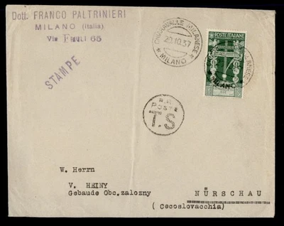 DR WHO 1937 ITALY MILAN TO CZECHOSLOVAKIA M61664