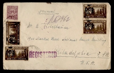 DR WHO 1948 ROMANIA RPR OVPT REGISTERED TO USA M56576