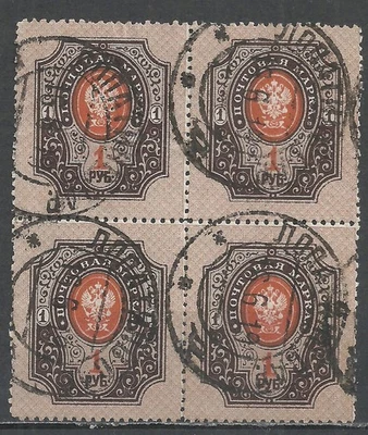 Russia Coat of Arms Block of 4 Used with Lopatino Circular Cancel