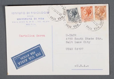 MayfairStamps Italy 1969 Pisa University to Salt Lake City Air Mail Post Card aa
