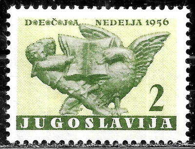 HICK GIRL- MINT YUGOSLAVIA STAMP SC#RA16 1956 CHILDREN & GOOSE L327