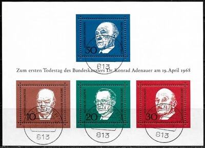 1968 Germany miniature sheet for memorial of Konrad Adenauer cancelled to order