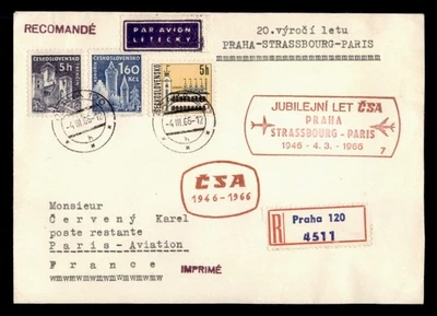 DR WHO 1966 CZECHOSLOVAKIA CSA JUBILEE FLIGHT STRASSBOURG TO PARIS w14266