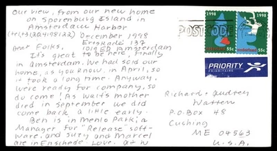Mayfairstamps Netherlands 1998 Amsterdam to Cushing ME Postcard aau_79829