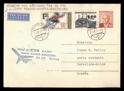 DR WHO 1977 CZECHOSLOVAKIA CSA FIRST FLIGHT TO BARCELONA SPAIN w14261