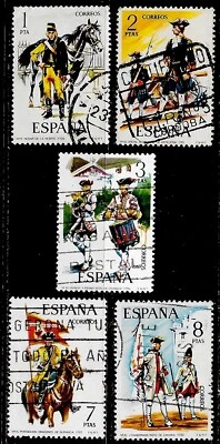 1974 Spain full set of 5 stamps depicting military uniforms that are used