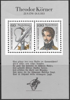 1991 Germany miniature sheet 200th anniversary of birth of Karl Körner in UMM